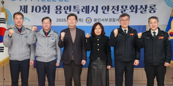 용인특례시(시장 이상일)는 6일 오전 용인서부경찰서 3층 회의실에서 열린 제10회 안전문화살롱 정기회의에서 안심공원 조성과 청소년범죄 예방 창작문화작품 전시 활성화 방안을 논의했다고 7일 밝혔다. 회의엔 이상일 용인특례시장, 김희정 용인교육지원청교육장, 김종길 용인동부경찰서장, 김…