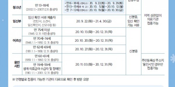 용인시는 겨울철 시민 건강을 위해 9월8일부터 4월30일까지 관내 지정 의료기관을 통해 무료 독감 예방접종을 한다고 밝혔다. 올해는 코로나19와 증상이 유사한 인플루엔자의 확산을 막기 위해 생후 6개월에서 만12세, 만65세 이상이던 인플루엔자 접종 대상을 한시적으로 생후 6개월 …