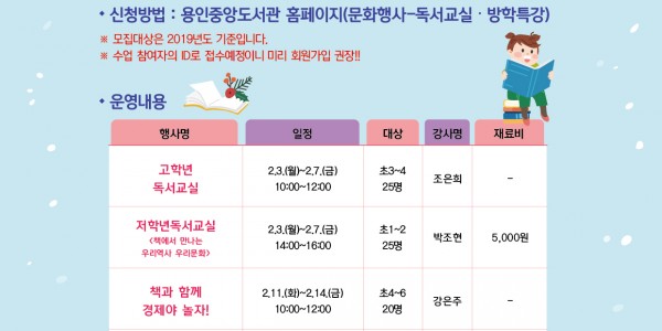 용인시도서관 겨울 독서교실 ‧ 방학특강 참여자 모집
