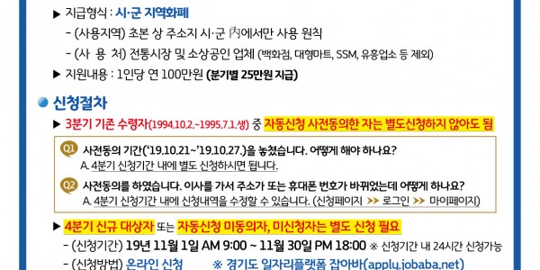 용인시, 2019년 4분기 청년기본소득 신청 접수