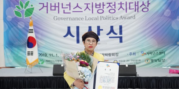 용인시의회 박남숙 의원, 2019 거버넌스 지방정치대상 우수상 수상