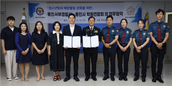 용인서부경찰서(서장 김병록)는 2024. 9. 12.(목) 10:30경 경찰서에서 청소년범죄 예방활동 강화를 위한 용인서부경찰서-용인시 학원연합회 間 업무협약을 체결했다고 밝혔다. 이번 협약은 학교폭력 및 중독성범죄(도박, 마약)∙성범죄(딥페이크 등)의 다양한 청소년 문제에 대한 …