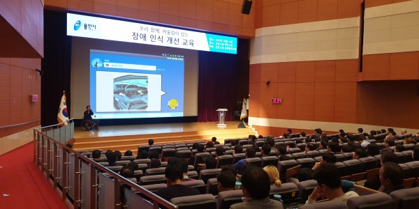 용인시는 14일 시청 에이스홀에서 직원들을 대상으로 장애에 대해올바른 이해를 하도록 인식을 개선하는 교육을 했다. 공직사회에서부터 장애인을 이해하고 배려해야 누구 하나 소외되지 않는 따뜻한 배려의 복지도시를 만들 수 있다는 판단에서다. 이날 윤대영 한국척수장애인협회 용인시지…
