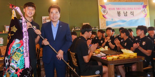 백군기 시장, 전국 고교축구대회 우승 신갈고 선수 격려