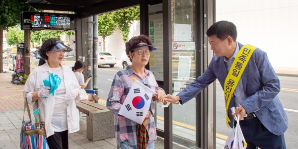 용인시의회 이건한 의장을 비롯해 남홍숙 부의장, 박만섭 경제환경위원장, 이제남, 김상수, 안희경, 김운봉, 장정순 의원은 13일 민족통일용인시협의회의 주최로 열린 광복절 태극기 무료 증정 행사에 각 지역별로 참여했다. ○ 의원들은 제74주년 광복절을 맞아 시민들에게 태극기를 나눠주…