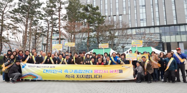 용인시 수지구는 11일 구청 광장에서 대한민국 축구종합센터 유치를 염원하는 홍보 캠페인과 서명운동을 열었다. 수지구 축구협회가 주관한 이날 행사에는 이건한 용인시의회의장, 정춘숙․이우현 민주당 용인 병 지역위원장, 강웅철․황재욱․윤원균․이창식․장정순․윤재영․명지선 시의원과 축구협회…