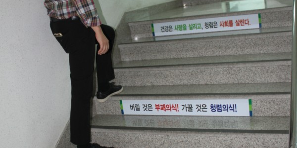 용인도시공사(사장 김한섭)는 임직원들의 청렴 의식을 강화하고 윤리적인 조직문화를 만들기 위해‘청렴계단'을 조성했다고 6일 밝혔다. 방문객의 출입이 빈번한 본사 건물 안 모든 계단에 청렴경영의 의지를 담은 문구를 배너 형태로 게시한 것이다. ‘함께하는 청렴실천! 신뢰받는 도시…