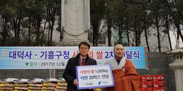 기흥구 대덕사에서 이웃돕기'사랑의 쌀'100포 기탁