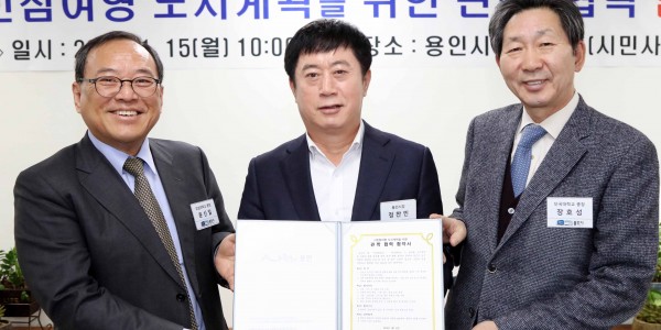 정찬민 용인시장은 15일 시민홀에서 윤신일 강남대학교 총장, 장호성 단국대학교 총장과 도시계획 및 부동산 분야 관‧학 협력 협약을 체결했다고 밝혔다. 협약은 대학생들의 젊고 참신한 아이디어를 도시계획 수립에 반영해 쾌적한 도시환경 조성 및 지속가능한 도시발전을 도모하기 위한 것이다…