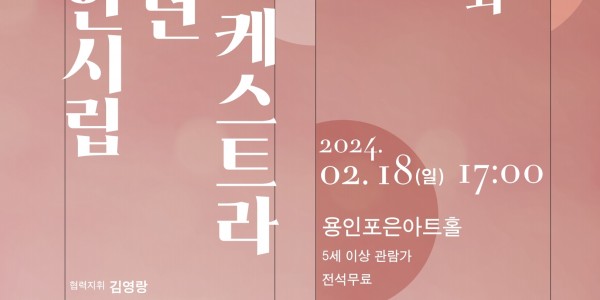 용인문화재단(이사장 이상일)은 오는 2월 18일에 용인포은아트홀에서 용인시립청소년오케스트라 ‘제35회 정기연주회’를 개최한다고 밝혔다. 용인시립청소년오케스트라는 2004년에 창단되어 용인특례시의 높은 문화 수준 향상을 위해 지속적인 정기연주회, 기획공연 등 다양한 연주 활동으로 시…