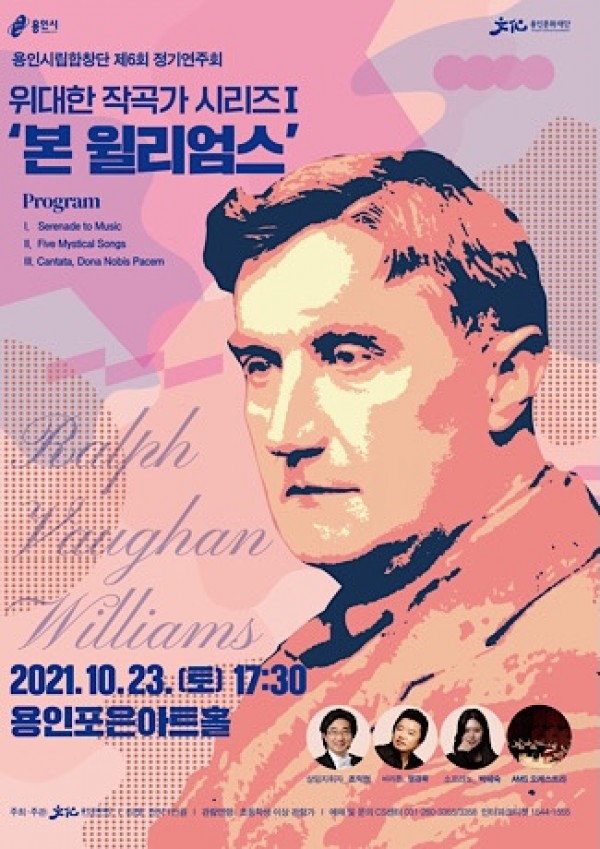 (재)용인문화재단(이사장 백군기) 용인시립합창단은 제6회 정기연주회 를 10월 23일 오후 5시 30분에 용인포은아트홀에서 개최한다. 이번 연주회는 용인시립합창단의 ‘위대한 작곡가 시리즈’의 첫 번째 무대로, 20세기를 대표하는 위대한 작곡가 본 윌리엄스(Ralph Vaughan Williams)를 선정해 독창과 합창, 오케스트라로 구성된 정통 클래식 연주로 진행되며, 국내 정상급 바리톤 염경묵, 소프라노 박혜숙과 AM…
