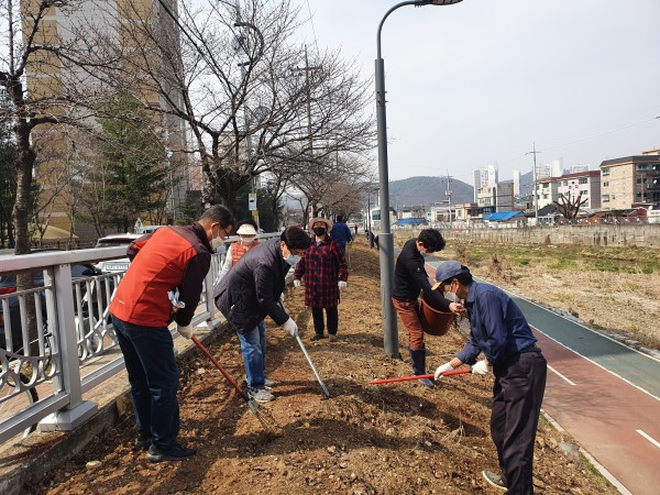 용인시 처인구 동부동은 18일 주민자치센터가 양지천 일대 500m구간에 ‘테마가 있는 꽃길’을 조성했다고 밝혔다. 이날 주민자치센터 위원, 동 직원 등 20명은 양지천 시작 지점인 용마초등학교에서 자이아파트 구간 500m에 꽃양귀비, 코스모스, 황화 등 꽃씨 9종을 뿌렸다. 동은 이날 뿌린 9종의 꽃씨가 발화 시기가 달라 계절별로 다채로운 풍경을 주민들에게 제공할 것으로 기대하고 있다. 이들은 또 쾌적한 거리환…