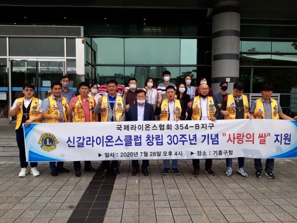 용인시 기흥구는 28일 신갈라이온스클럽이 어려운 이웃을 위해 써 달라며 구청을 방문해 쌀 10kg짜리 210포를 기탁했다고 밝혔다. 이날 기탁한 쌀은 라이온스 회원들이 십시 일반 성금을 모아 마련한 것으로 기흥구 9개동 어려운 이웃을 위해 골고루 전달할 예정이다. 이광창 신갈라이온스클럽 회장은 “클럽 창단 30주년을 기념해 봉사 정신을 의미있게 되새기고 싶다는 회원들의 뜻을 모아 기탁을 하게 됐다”고 말했다. …
