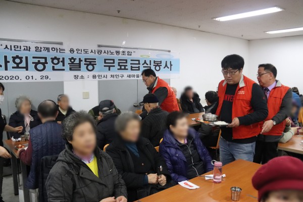 용인도시공사 노동조합은 29일 오전 11시 처인구 마평동 새마을 무료 급식소를 찾아 지역 내 소외계층을 초청하여 설맞이 떡국을 대접하는 급식 봉사를 실시했다. 이날 행사는 같은 날 오후에 열린 2020년 조합 정기총회를 앞두고, 지역 내 공공기관 노동조합으로서 사회공헌의 일환으로 행사를 가졌다. 장용찬 위원장 등을 비롯한 노조 간부와 대의원들은 솔선수범해 떡국을 배식하고, 어르신들에게 새해 덕담을 건네며 건강을 기…