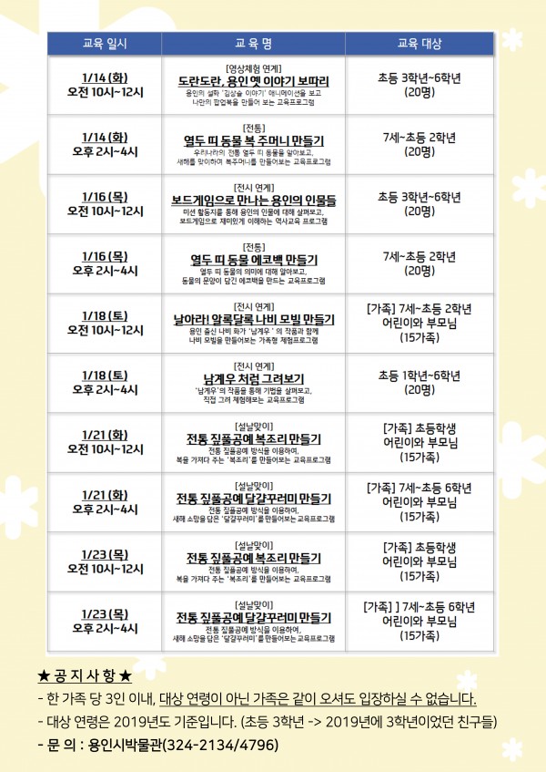 용인시박물관 겨울방학 체험 프로그램 참가자 모집