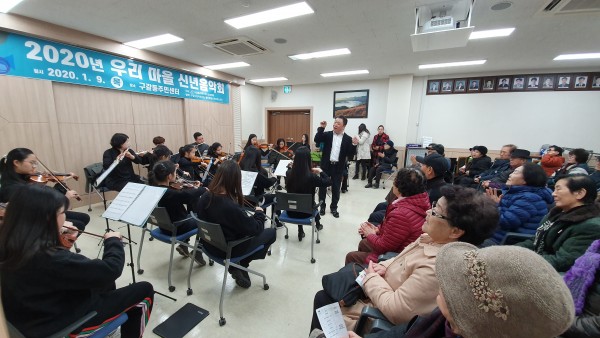 용인시 기흥구 구갈동은 지역사회보장협의체가 9일 주민센터 회의실에서 저소득 홀로어르신과 장애인 등 불우이웃을 위한 음악회를 열었다고 밝혔다. 협의체는 올해 특화사업으로 어르신과 장애인에게 문화 체험의 기회를 선물하기 위해 이 공연을 마련했다. 이날 구갈시립어린이집 원아 35명과 용인필청소년오케스트라 단원 25명이 재능기부로 아리랑, 섬집아기, 바람이 불어오는 곳 등 아름다운 하모니를 선보였다. 공연을 관람한 한…
