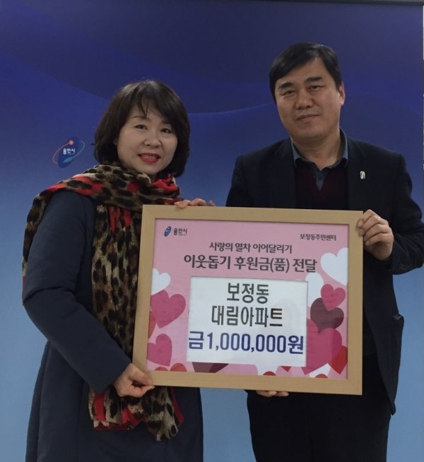 용인시는 얼굴없는 기부천사 등 주민 ‧ 단체 등에서 사랑의 열차 이어달리기 운동에 이웃돕기 성금과 성품을 기탁했다고 7일 밝혔다. 처인구 원삼면에선 지난 3일 한 익명의 기부자가 주민센터에 마련된 사랑의 열매 모금함에 작년에 이어 100만원권 수표 한 장을 또 기부했다. 면 직원들은 감사를 전하기 위해 기부자를 수소문했지만 행적을 확인할 수 없어 직접 작성한 편지를 모금함 옆에 비치해 인사를 대신했다. 면 관…