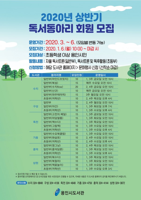 용인시도서관 상반기 독서동아리 회원 275명 모집