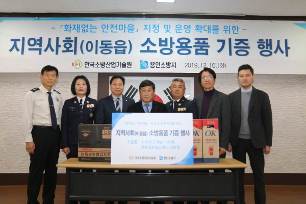 용인소방서(서장 이경호)는 10일 한국소방산업기술원과 함께 처인구 이동읍사무소에서 취약계층의 안전을 위해 소화기와 단독경보형감지기를 전달하는 기증식을 진행했다고 밝혔다. 이번 행사는 한국소방산업기술원의 지역사회 안전을 위한 사회공헌활동의 일환으로 진행되었으며, 소방시설의 보급이 시급한 취약계층을 대상으로 주택용 소방시설(소화기 100개, 단독경보형감지기200개)을 기증하였다. 한편 이날 행사종료 후 기증식에 참석…