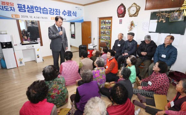 백군기 용인시장, 평생학습 어르신에 수료증 전달