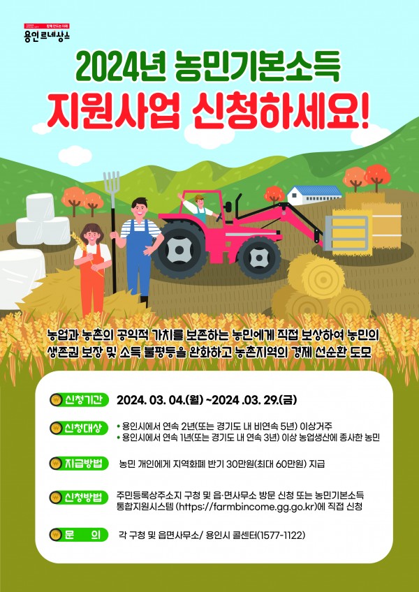 용인특례시, “29일까지 농민기본소득 신청하세요”