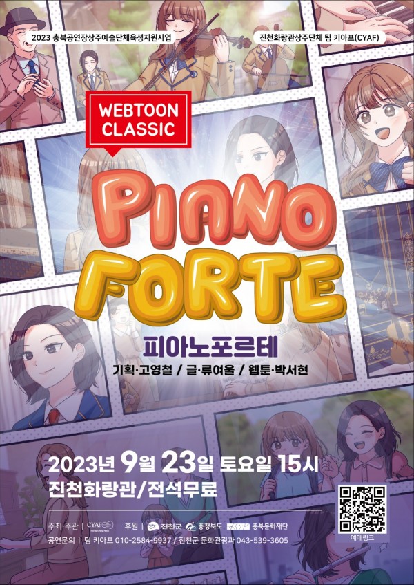 진천군, 음악극 ‘피아노 포르테’ 개최 진천군은 23일 오후 3시 화랑관에서 음악극 ‘피아노 포르테’를 개최한다고 11일 밝혔다. 이번 공연은 2023년 공연장 상주 지원단체 공모사업에 지난해에 이어 선정된 팀 키아프의 공연으로, 웹툰과 클래식이라는 새로운 형식의 공연을 통해 관람객들에게 새로운 경험과 신선한 재미를 선사할 것이다. 또한 클래식 월드컵 대표 선발전에서 …