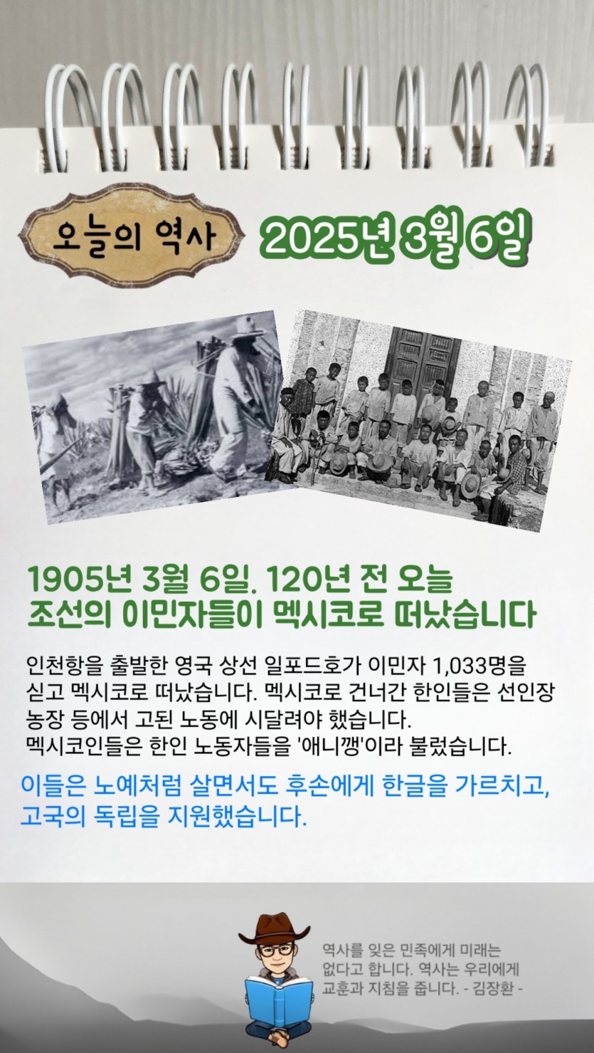 노예 같은 애니깽 생활에도 고국에 독립자금을 지원하다! 김경순기자 2025-03-06 13:28 가 본문내용 확대/축소 본문 노예 같은 애니깽 생활에도 고국에 독립자금을 지원하다!노예 같은 애니깽 생활에도 고국에 독립자금을 지원하다! 120년 전, 멕시코는 기회의 땅이었다. 열강들의 야욕에 한치의 앞을 내다볼 수 없는 국가 운명에 낙담하고 있던 조선인들에게 <묵서가의 근로자 모집> 광고는 호기심을 자극했다. 묵서가(墨西哥)는 멕시코이다. <김장환 프로필> 전, 용인예총 사무국장 전, 용인문화원 사무국장 현, 용인문화콘텐츠연구소장 현, 국립민속박물관 전통문화 강사 4년 계약, 주택 무료 임대, 높은 임금...이라는 자극적인 조건에 매료된 1천33명은 멕시코 첫 한인 이주민으로 1905년 3월 6일 인천 제물포항을 출발했다. 그들은 일본 요코하마를 거쳐 출항 한 달만에 멕시코에 도착했다. 아이 2명과 어른 1명이 숨지고, 아이 1명이 태어나 1천 31명이었다. 이들은 유카탄에서 10∼25명씩 나뉘어 에네켄(애니깽) 농장에 배치됐다. 에네켄은 날카로운 잎을 가진 선인장의 일종으로 잎을 잘라 삶은 후 선박용 로프를 만들었다. 한인들은 새벽 4시부터 40도의 불볕더위 속에서 에네켄을 자르고, 뜨거운 솥에 삶고, 섬유질을 벗겨냈다. 얼굴은 검게 타고, 가시에 찔려 손에서 피가 났다. 약속과는 달리 임금이 체불되었고, 임대주택과 식량도 제공되지 않았다. 노예와 같은 계약 기간이 끝났을 때 대한제국은 일본에 강탈되어 한인들은 돌아갈 나라가 없어졌고, 그들은 멕시코 전역으로 흩어졌다. 그러나 낯선 이국땅에서 할 수 있는 것이 없어 대부분은 애니깽으로 돌아갔다고 한다. 일부는 멕시코 주민과 결혼했다. 그러던 중 쿠바의 사탕수수 농장은 조건도 좋고 일도 수월하다 하여 1921년 300여 명이 쿠바로 이주했지만 국제 사탕수수 가격이 10분의 1로 폭락하자 다시 쿠바의 에네켄 농장으로 흩어지게 된다. 이들이 현재 쿠바에 사는 한국계 1천여 명의 선조다. 멕시코 한인들은 고생을 대물림하면 안 된다는 의지와 정체성 수호를 위해 <한글학교>를 설립해 아이들을 가르치고, 독립운동 자금을 모아 고국에 보냈다. 또 <대한인 국민회의>를 설립해 국권회복 운동도 전개했다. 무관 양성기관인 <숭무학교>를 세워 군인을 양성하기도 했다. 좋아요 0 싫어요 0 김경순기자 기자의 다른기사 보기 목록 댓글목록 이전글 한국인은 말(언어)을 중요시 여긴다. 25.03.13 다음글 인간의 순기능 25.03.02