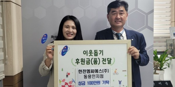 한전엠씨에스(주) 동용인지점, 중앙동에 이웃돕기 성금 100만원 기탁