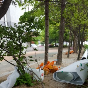 ▲공용쓰레기봉투가 제대로 처리되지 않아 그 주변이 쓰레기장으로 변한 모습▲많은 시민들이 다니는 곳인데도 적나라하게 펼쳐져 있는 쓰레기의 모습▲쓰레기가 제대로 치워…