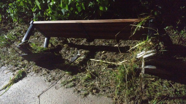 신갈천에 어제 내린 폭우로 시민의 휴식처인 의자가 물에 둥둥떠 다니다가 언덕에 걸려있네요. 의자와 바닥을 고정하는 나사가 아주 작아서 슬쩍 걸처있어서 물살에 밀려 떠내려갔네요. 의자와 바닥을 고정시키는 나사를 깊이 박아주시길 바랍니다. 작은 꽃 한송이보다 못한 고정나사라니 ㅉㅉ