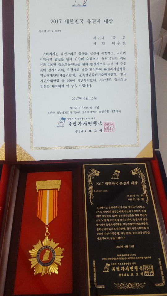 유권자가 인정한 빛나는 국회의원 (이우현) 소비환경뉴스 2017-06-15 12:06 가 본문내용 확대/축소 본문 유권자가 인정한 빛나는 국회의원 (이우현)유권자가 인정한 빛나는 국회의원 (이우현) 이우현 국회의원(자유한국당 용인 갑, 국토교통위원회 간사)이 15일 사립학교교직원연금공단 대강당에서 유권자시민행동이 주최한 ‘2017 대한민국 유권자 대상’ 국회의원 부문 수상자로 선정 되었다. ‘대한민국 유권자 대상’은 직능ㆍ소상공인, 골목상권ㆍ자영업 등 260여 단체가 공동 출범한 ‘유권자시민행동’에서 공약 이행 및 골목상권 살리기, 직능인과 중소상공인에 대한 우수 정책을 추진한 선출직 공직자를 선정해 주는 상이다. 이우현 의원은 그 동안 공약 실천과 중소상공인의 권익보호 및 사회적 약자를 위한 의정활동이 높이 평가된 바, 2015부터 3년 연속 수상이라는 영예를 안았다. 이에 이우현 의원은 “부족하지만 늘 저에게 보내주시는 끊임없는 믿음과 성원이 용인과 대한민국 발전을 위해 쉼없이 움직일 수 있게 해주는 원동력”이라며 “앞으로도 빠르게 변화하는 삶에 맞게 서민경제를 위한 정책들을 보완하고 해결하며 정책활동에 꾸준히 임하겠다”고 밝혔다. .. 좋아요 0 싫어요 0 소비환경뉴스 기자의 다른기사 보기 목록 댓글목록 이전글 이건영 의원, 용인시 최초 공립 특수학교 설립 추진 17.07.14 다음글 이건한의원 로컬푸드 육성 지원에 관한 조례안 17.06.07