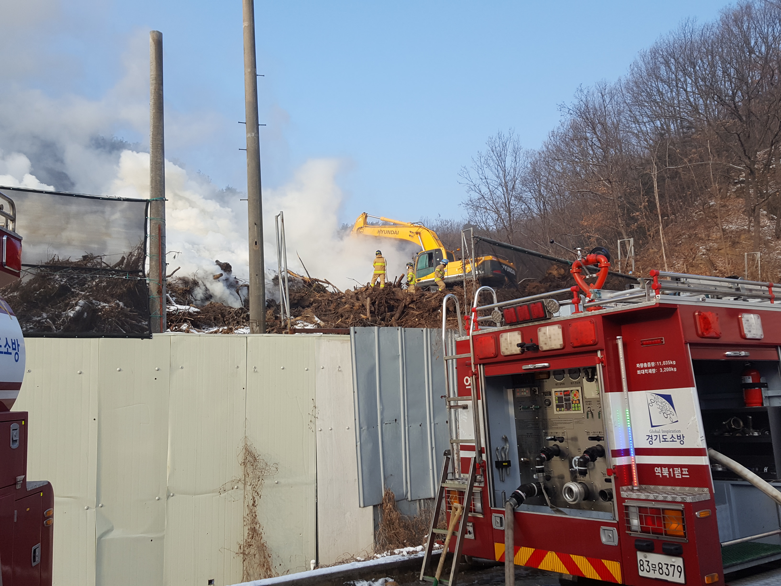 화재 소비환경뉴스 2018-01-15 10:30 가 본문내용 확대/축소 본문 화재화재화재화재 ❍ 일 시 : 2018. 1. 14.(일) 접수 05:41, 도착 05:47, 현재 진압중 ⦁ 선착대 : 용인소방서 9.1㎞, 이동119안전센터 1.1㎞ ❍ 장 소 : 용인시 처인구 이동면 덕성리1078-4 ❍ 대 상 : 기주산업(목재 폐기물처리시설) ❍ 발화원인 : 화학적 요인(자연발화) 추정 ❍ 개 요 : 현장 감식한바 목재 폐기물은 17년 1월부터 약 1년간 2,000ton이 야적뙤어 있었던 점, 약 10m 높이의 목재 내부에서 연기와 불꽃이 분출하고 있었던 점, 포크레인으로 이동, 진압 중에도 목재 심부에서 다량 연기가 분출되는 상황임. 다량의 목재가 장기간 야적되면서 심부에서 압력이 크게 작용하고, 내부 온도가 상승, 발효과정을 거치면서 발효열에 의해 축열되면서 자연발화한 것으로 추정됨. ※ 2016.01.08. 톱밥에서 축열에 의해 화재가 발생하였고, 2016.09.12.에 동일 장소에서 자연발화에 의해 화재가 발생한 이력이 있음. ❍ 소 방 력 : 장비 15대, 인원 40명 □ 피해상황 ❍ 인 명피해 - 사상자 현황 : 없음(유도대피 0명) ❍ 재산피해 : 1,801천원(부동산 0천원, 동산 1,801천원) ※ 부동산 : 해당없음 ※ 동 산 : 목재 폐기물 2,000ton 중 300ton 소실중(1루베당 1천원 단가 계산) 좋아요 0 싫어요 0 소비환경뉴스 기자의 다른기사 보기 목록 댓글목록 이전글 평창동계올림픽 성화 17.12.04 다음글 패혈증 시민 사경서 구한 용인시의 적극 홍보 화제 18.01.09