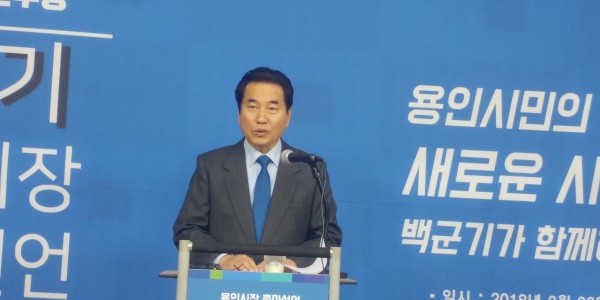 더불어민주당 백군기 전 국회의원이 2018년 2월 26일 오전 11시 용인시청 3층 브리핑 룸에서 기자회견을 열고 제7회 전국동시지방선거에서 용인시장으로 출마할 것을 100만 시민께 보고했다. 이 날 백 전 의원은 남홍숙, 정창진, 이제남, 최원식 시의원과 지지자 등 110여명이 …