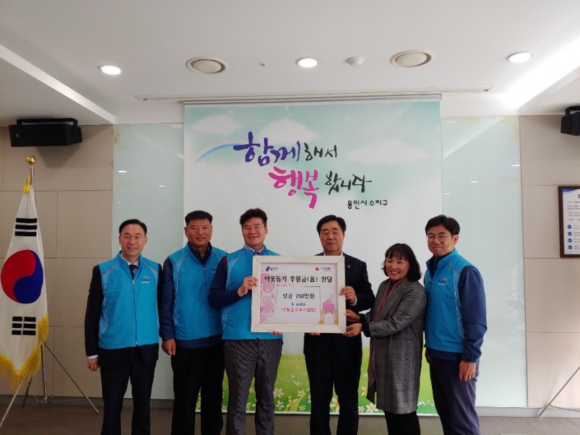 수지구, 한국수자원공사서 장학금 250만원 기탁 김경순 기자 2019-10-24 22:16 가 본문내용 확대/축소 본문 수지구, 한국수자원공사서 장학금 250만원 기탁 용인시 수지구는 24일 상현동 한국수자원공사 수도권수도사업단 물사랑나눔단에서 저소득 가구 청소년을 돕는데 써달라며 장학금 250만원을 기탁했다고 밝혔다. 구는 이 성금을 경기사회복지공동모금회를 통해 관내 차상위계층 ‧ 한부모가정 등 저소득 가구 청소년 5명에게 전달할 예정이다. 나봉길 단장은 “어려운 상황에서도 우수한 성적으로 모범이 되는 청소년들을 응원하기 위한 것”이라며 “지역사회에 따뜻한 마음을 나눠 공기업의 사회적 역할을 다 할 것”이라고 말했다. 구 관계자는 “한국수자원공사 직원들이 청소년들에게 나눔을 실천해줘 감사하며 학생들이 용기를 얻고 건강하게 성장할 수 있도록 꾸준한 지원을 할 것”이라고 말했다. 좋아요 0 싫어요 0 김경순 기자 기자의 다른기사 보기 목록 댓글목록 이전글 광교산 일대 7.6㎢ 성장관리방안 24일 시행 19.10.24 다음글 기흥구, 정암교회에서 이웃돕기 쌀 100포 기탁 19.10.24