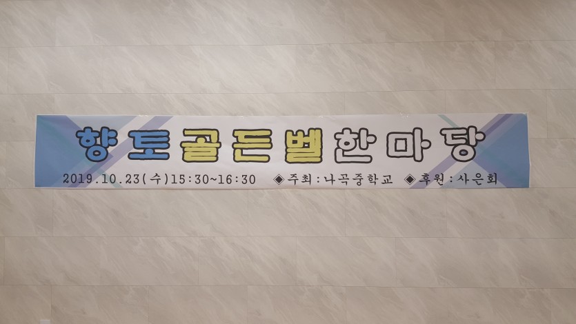 용인 나곡중학교(교장 위계로)는 2019년 10월 23일 ‘지역향토 문화보존단체 사은정 보존회’와 ‘향토 골든벨 한마당’을 실시하였다.