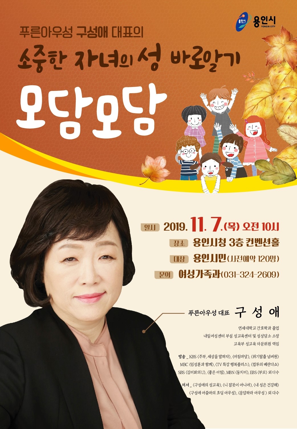 구성애 강사의 자녀 성교육 특강 참여자 80명 모집 용인시, 11월7일 시청 에이스홀서…5일까지 신청 접수 김경순 기자 2019-10-31 00:19 가 본문내용 확대/축소 본문 구성애 강사의 자녀 성교육 특강 참여자 80명 모집 용인시는 어린 자녀를 기르는 부모를 대상으로 구성애 강사의 성교육 특강에 참여할 시민 80명을 11월5일까지 모집한다. 1차 접수 때 예정한 120명이 순식간에 마감될 만큼 시민들의 관심이 높아 추가로 80명을 모집하는 것이다. 11월7일 시청 에이스홀에서 열리는 이 특강에선 구성애씨는 참가자들의 자녀의 성에 대한 궁금증을 구체적인 사례로 설명해 줄 예정이다. 시는 행사 전 참가자들에게 질문을 접수받아 강사가 직접 상황별 대처방법을 알려주도록 할 방침이다. 시 관계자는 “아이가 자라면서 가지는 성에 대한 궁금증을 현명하게 해결할 수 있도록 솔루션을 제공하려고 이 특강을 준비했다”고 말했다. 신청은 시 여성가족과(031-324-2609)로 전화하면 된다. 좋아요 0 싫어요 0 김경순 기자 기자의 다른기사 보기 목록 댓글목록 이전글 용인시·일양약품·덕영고 지역인재 고용 확대 MOU 19.10.31 다음글 상현고, 마을과 함께 하는 과학 캠프 과학동아리와 함께 하는 과학체험 한마당 운영 19.10.31