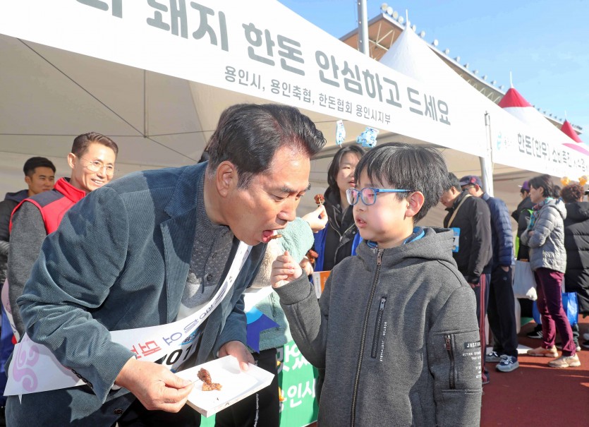 돼지고기 소비촉진 시식‧판매 행사 열어 - 용인시, 우리돼지 한돈 무료시식·돼지고기 시중보다 40% 저렴히 판매 - 김경순 기자 2019-11-09 22:00 가 본문내용 확대/축소 본문 돼지고기 소비촉진 시식‧판매 행사 열어돼지고기 소비촉진 시식‧판매 행사 열어 용인시는 9일 용인축협, 한돈협회 용인시지부와 함께 돼지고기 소비촉진을 위해 삼성나눔워킹페스티벌 행사장인 마평동 용인종합운동장에서 돼지고기 무료 시식‧판매 행사를 열었다. 아프리카 돼지열병 발생이후 돼지고기 소비가 급격히 줄어 어려움을 겪고 있는 양돈 농가를 돕고 우리 돼지고기의 안정성을 홍보하기 위해서다. 이날 행사장에선 한돈 무료 시식회를 하고 돼지고기를 시중에서 판매하는 것 보다 40% 가량 저렴한 금액으로 판매했다. 삼겹살과 목살은 1만원/kg, 등심과 안심은 7000원/kg, 전지 7500원/kg, 찜갈비9000원/kg, 등갈비 1만5000원/kg, 항정살 2만1000원/kg 등으로 시민들의 인기를 끌었다. 행사장을 찾은 백군기 용인시장은 “시중에 판매되는 돼지고기는 아프리카 돼지열병과 관계없이 안전성이 입증된 축산물”이라며 “이중고를 겪고 있는 한돈 농가를 위해 돼지고기 소비촉진에 동참해 달라”고 시민들에게 당부했다. 한편, 용인시는 구내식당 점심메뉴에 주2회 돼지고기 메뉴를 넣도록 하고, 기업체 및 학교급식소 등에 돼지고기 소비 협조를 요청했다. 좋아요 0 싫어요 0 김경순 기자 기자의 다른기사 보기 목록 댓글목록 이전글 드림스타트 아동합창단 ‘아름다운 도전상’ 수상 - 용인시, 인사혁신처 적극행정 우수사례 대회서…실패 극복 도전의식 높게 평가 - 19.11.09 다음글 백군기 용인시장, 지역아동센터 가을문화행사 참여자 격려 19.11.09
