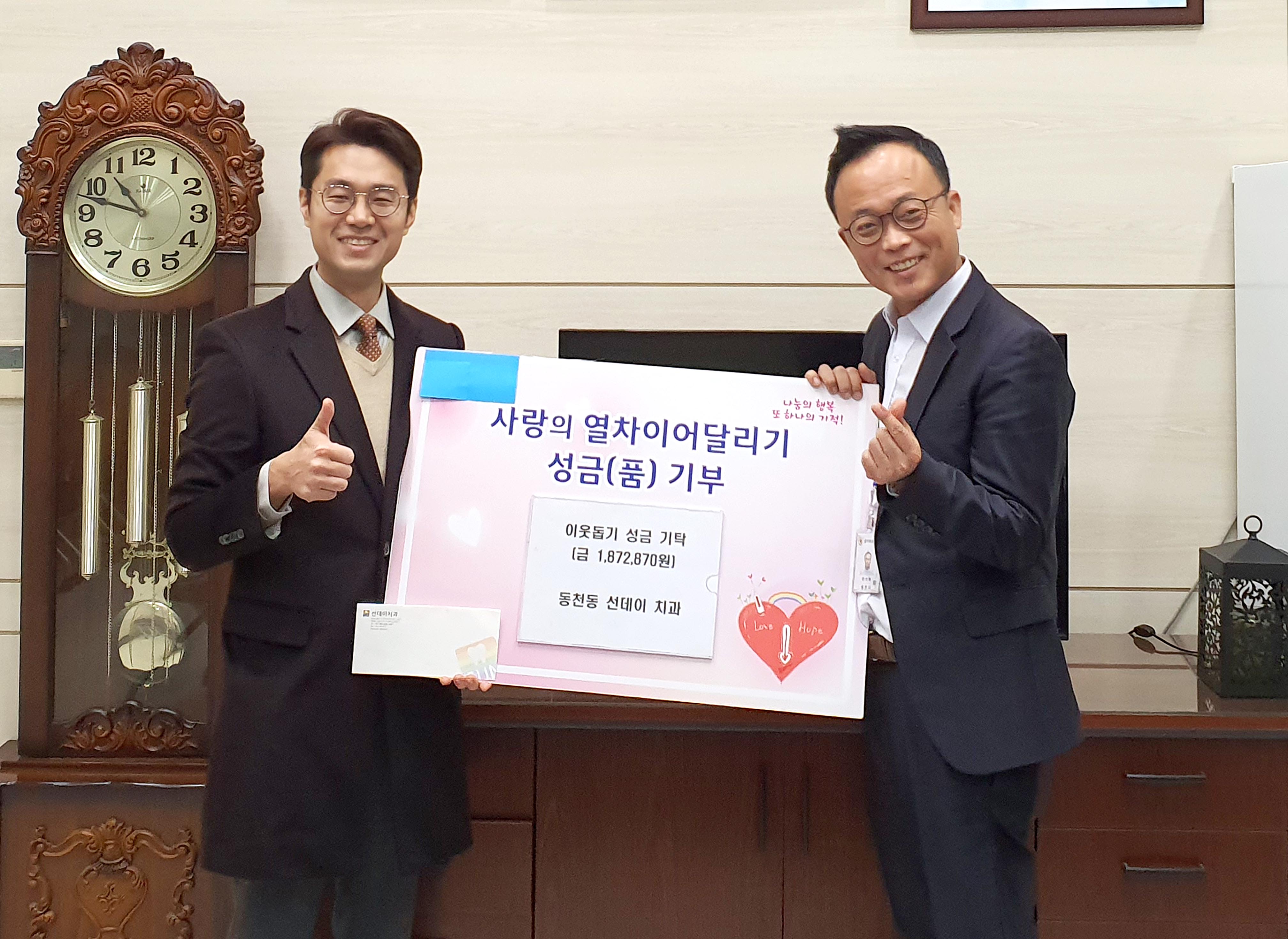 용인시, 건축사협·모현기업인협 등 이웃돕기 동참 김경순 기자 2019-12-12 23:23 가 본문내용 확대/축소 본문 용인시, 건축사협·모현기업인협 등 이웃돕기 동참용인시, 건축사협·모현기업인협 등 이웃돕기 동참용인시, 건축사협·모현기업인협 등 이웃돕기 동참용인시, 건축사협·모현기업인협 등 이웃돕기 동참 용인시는 11일 연말연시 이웃돕기 운동 ‘사랑의 열차 이어달리기’에 각계각층 시민들의 온정이 이어지고 있다고 밝혔다. 이날 용인건축사협회 김종기 회장 등 회원 4명이 시청을 찾아와 관내 저소득층을 지원하는 데 써 달라며 성금 350만원을 기탁했다. 이들은 지난 2015년부터 어려운 이웃을 위해 주거 취약계층의 집수리 지원 등 다양한 봉사와 나눔 활동을 펼치고 있다. 지난해에는 쌀 140포를 기탁한 바 있다. 같은 날 처인구 모현읍기업인협의회도 모현읍사무소를 찾아와 관내 저소득층을 위해 써 달라며 성금 300만원과 생필품 등을 전달했다. 기탁한 생필품은 모현읍 기업인협의회에 소속된 회사에서 생산하고 있는 냉동식품, 조명기구, 지퍼락, 종이컵 등이다. 앞선 10일에는 동천동 소재 선데이치과 의원이 어려운 이웃을 위해 써 달라며 성금 1,872,870원을 기탁했다. 성금은 지난 1년간 환자들이 기부한 금 이빨을 모아 마련한 것이다. 9일에는 상현1동 노인회가 성금 55만원을 기탁했다. 이 성금은 노인회 분회와 경로당 어르신들이 십시일반 모은 것이다. 기탁된 성금은 경기사회복지공동모금회를 통해 관내 어려운 이웃이나 복지시설을 지원하는데 쓰일 예정이다. 좋아요 0 싫어요 0 김경순 기자 기자의 다른기사 보기 목록 댓글목록 이전글 용인도시공사 직원들 하천환경 정화 봉사활동 실시 19.12.12 다음글 이동읍, 소방산업기술원 화재취약계층 위해 소화장비 기탁 19.12.12