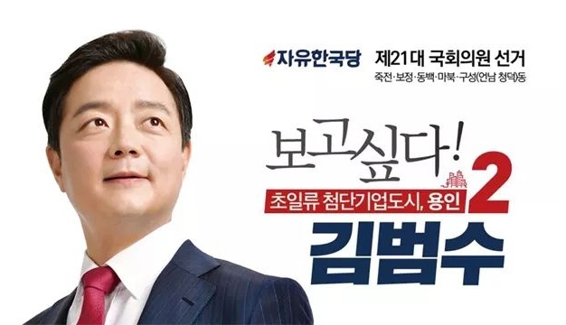 정치인 김범수가 진정한 사통팔달 용인시를 교통의 중심, 교육과 문화예술의 중심, 첨단산업의 중심지로 만들어 ‘행복한 용인’ ‘자랑스러운 용인’ ‘세계 1류 도시 용인’을 건설하겠습니다.