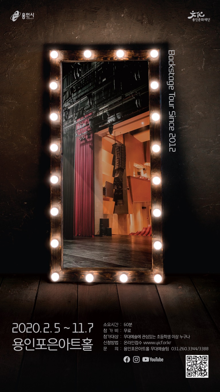 (재)용인문화재단(이사장 백군기)은 무대 체험 프로그램인 2020년 ‘백스테이지 투어’를 오는 2월 5일부터 11월 7일까지 총 24회로 분기별로 진행하며, 1월 28일부터 사전 참가 접수를 받는다. 1회 당 총60명의 참가자를 모집하며, 무대예술에 관심 있는 초등학생부터 성인까지 누구나 신청할 수 있고 참가비는 무료다.
