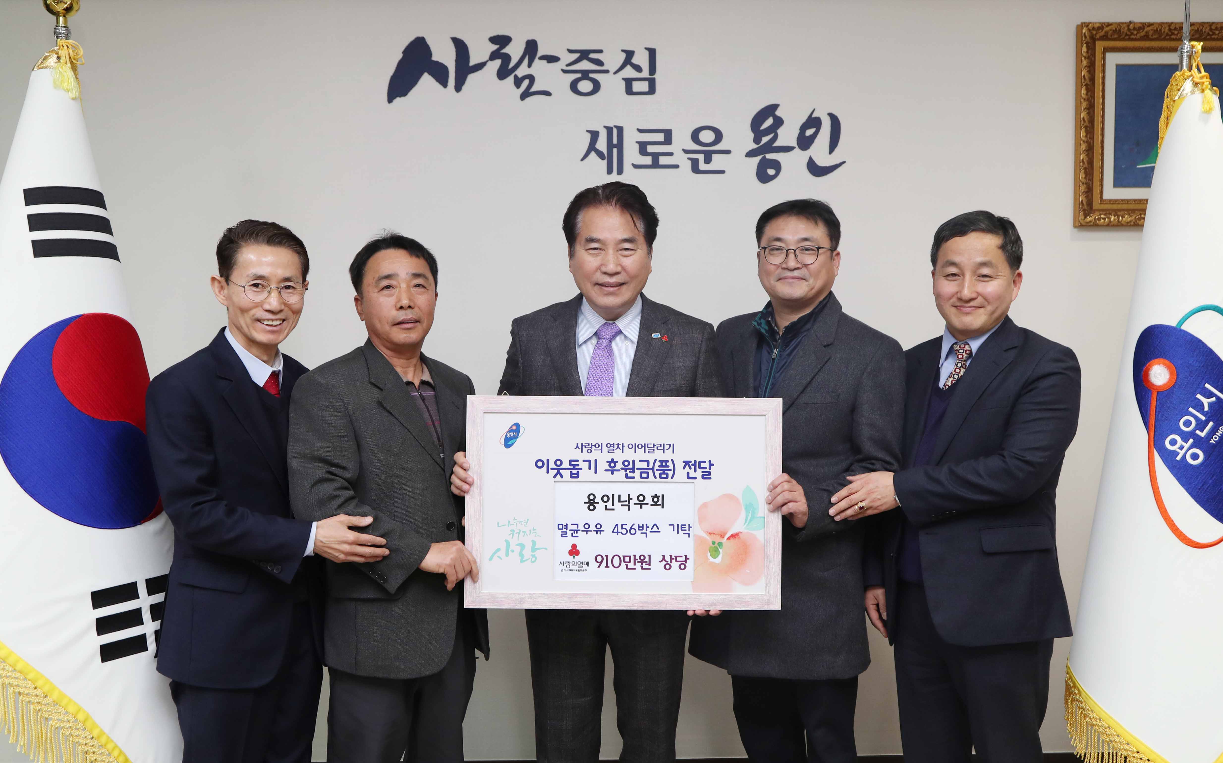 용인시, 용인낙우회서 멸균우유 456박스 이웃돕기 기탁 김경순 기자 2020-01-21 19:40 가 본문내용 확대/축소 본문 용인시, 용인낙우회서 멸균우유 456박스 이웃돕기 기탁 용인시는 20일 용인낙우회 관계자 4명이 백군기 시장을 찾아와 어려운 이웃을 위해 써 달라며 멸균우유 456박스(900만원 상당)를 기탁했다고 밝혔다. 기탁받은 멸균우유는 관내 아동복지시설과 푸드뱅크 등 42곳에 전달될 예정이다. 박제춘 용인낙우회 회장은 “설을 앞두고 형편이 어려운 이웃에게 작은 도움이나마 주려고 회원들이 십시일반 마음을 모았다”고 말했다. 백군기 용인시장은 “낙우회 회원들이 어려운 이웃을 위해 좋은 우유를 기부해줘 감사하다”고 말했다. 용인낙우회는 관내 젖소사육농가 28곳으로 구성된 단체로 매년 어려운 이웃에 우유를 기부하며 나눔 활동을 이어오고 있다. 좋아요 0 싫어요 0 김경순 기자 기자의 다른기사 보기 목록 댓글목록 이전글 양지면, 경로당 어르신 폐지 주워 모은 돈 이웃돕기 기탁 20.01.21 다음글 정춘숙 21대 국회의원 출마 선언 20.01.20