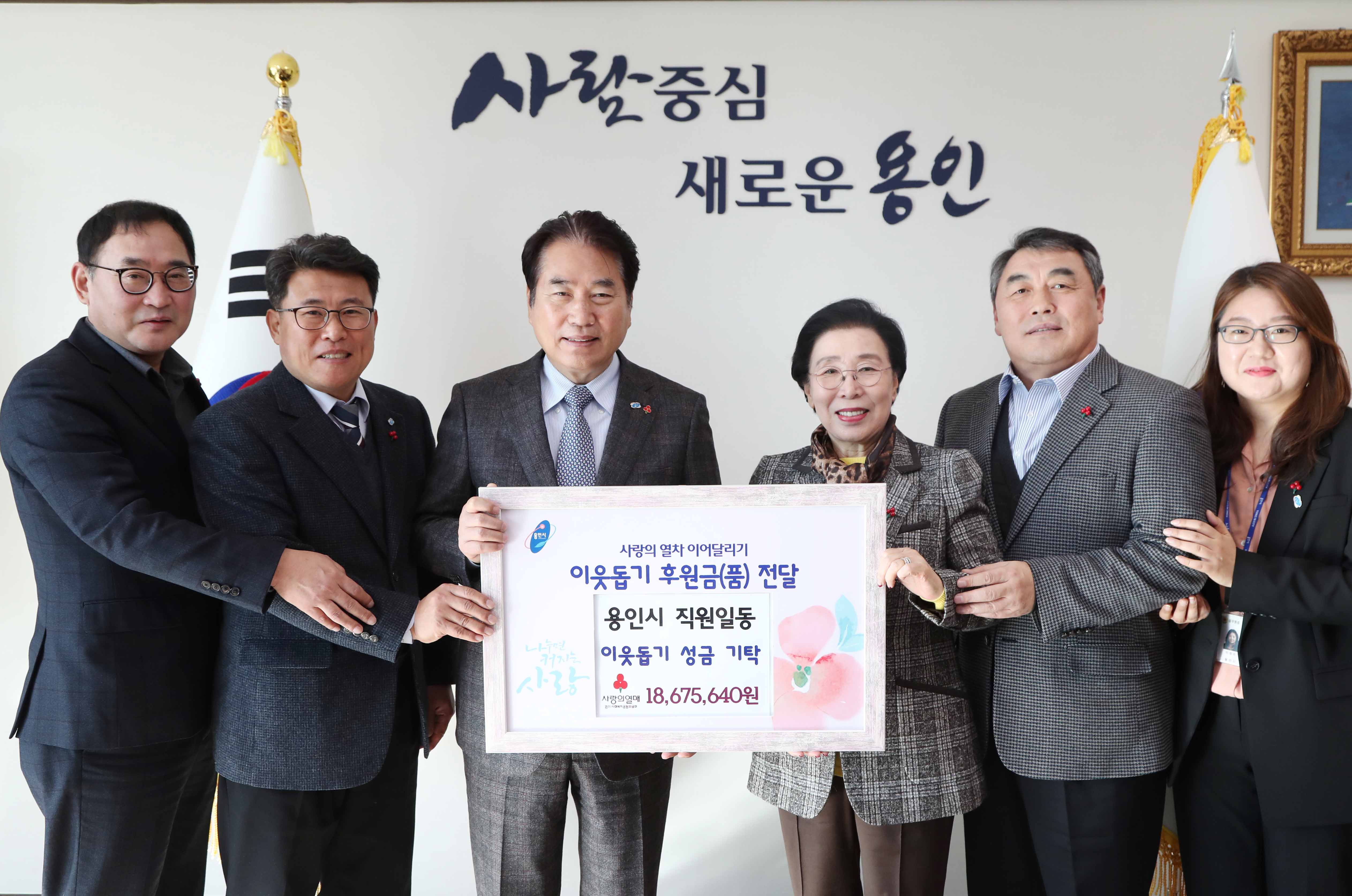 용인시 직원들 이웃돕기 성금 1800여만원 기탁 김경순 기자 2020-01-21 19:46 가 본문내용 확대/축소 본문 용인시 직원들 이웃돕기 성금 1800여만원 기탁 백군기 용인시장은 21일 시장실에서 시 직원들이 사랑의 열차 이어달리기 운동을 통해 모은 이웃돕기 성금 1867만원을 경기사회복지공동모금회에 기탁했다. 이 성금은 시청과 각 구 ‧ 읍면동 등 125개 부서 직원들이 어려운 이웃을 돕기 위해 자발적으로 십시일반 모은 것이다. 백 시장은 “공직자들이 더불어 사는 지역 공동체를 만드는 데 앞장서줘 감사하며 이번 성금으로 작게나마 어려운 이웃들이 따뜻한 명절을 보내는 데 보탬이 되기 바란다”고 말했다. 전달된 성금은 사회복지공동모금회를 통해 배우자와 사별 후 홀로 2명의 자녀를 기르고 있는 한부모 가정과 퇴거 위기에 놓인 어르신 가정, 월세가 체납된 가구 등 경제적 어려움을 겪고 있는 31가구에 전달될 예정이다. 한편, 2월7일까지 진행하는 사랑의 열차 이어달리기 운동을 통해 이날 현재 12억5500만원의 성금‧성품이 들어왔다. 좋아요 0 싫어요 0 김경순 기자 기자의 다른기사 보기 목록 댓글목록 이전글 용인시, 소상공인 ‧ 주민단체서 이웃돕기 성금 이어져 20.01.21 다음글 경기도교육청, 22일부터 사회단체보조금 지원 사업 공모 20.01.21