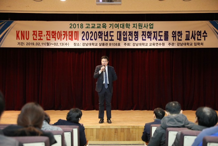 ‘강남대, 2020학년도 대입전형 진학지도를 위한 교사연수 개최’ 소비환경뉴스 2019-02-11 23:47 가 본문내용 확대/축소 본문 ‘강남대, 2020학년도 대입전형 진학지도를 위한 교사연수 개최’‘강남대, 2020학년도 대입전형 진학지도를 위한 교사연수 개최’ 내용을 입력해주세요..강남대학교(총장 윤신일)는 11일 오후 2시 강남대학교 샬롬관 지하 강당에서 고등학교 3학년 예비 담임 교사 150여 명을 초청해‘2020학년도 대입전형 진학지도를 위한 교사연수’를 개최했다. ‘2020학년도 대입전형 진학지도를 위한 교사연수’는 교사의 진로 및 진학지도 전문성을 강화하고 교사의 학생부 종합전형에 대한 이해도 제고를 위해 13일까지 총 15시간의 교육을 진행하는 프로그램이다. 이번 연수는 강남대학교 서병학 입학처장의 환영사를 시작으로 ▲진로지도 및 상담방법 ▲수능위주 전형자료 해석 및 진학지도 방법 ▲인문 논술전형의 특징 및 지도방법 ▲자연 논술전형의 특징 및 지도방법 ▲시기별 진학지도 방법 및 사례 ▲학생부종합전형 평가요소의 이해 ▲대학입학 전형자료의 이해 ▲대학입학 모집요강 보리 읽기 ▲전자평가시스템을 활용한 모의서류평가 ▲대입전형의 발전방향 토론 등 다양한 프로그램으로 교사들의 진로·진학지도 역량 강화 기회를 제공한다. 강남대학교 서병학 입학처장은 “매년 최신 대입전형 정보 제공과 현장 중심의 다양한 프로그램을 진행하는 교사연수를 통해 참여 교사들이 진로 및 진학지도 전문성 강화에 도움이 되길 기대한다”고 말했다. 한편, 강남대학교는 사회복지 분야 및 특수교육, 신학교육의 명문대학으로 웰-테크 기반 융합복지 전문가를 양성하며, 복지․ICT융합 선도 대학으로 자리매김하고 있다. 좋아요 0 싫어요 0 소비환경뉴스 기자의 다른기사 보기 목록 댓글목록 이전글 용인시 처인구, 시민 정보화 교육수강생 84명 모집 19.02.12 다음글 (재)용인시축구센터, 청렴 조직문화 위한 교육 ‧ 점검 강화 19.02.11