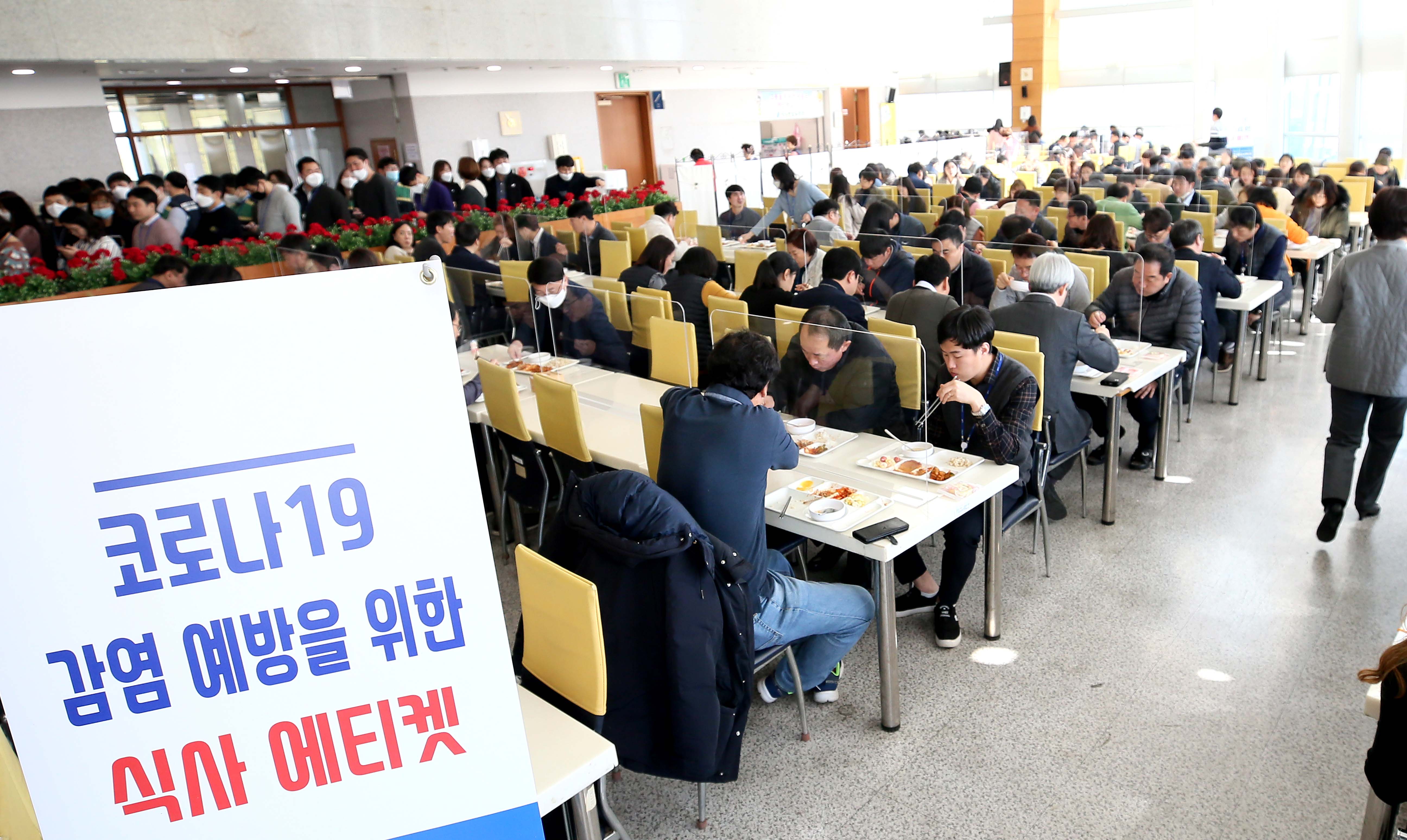 가림막 세우고 2교대로 점심먹는 용인시 직원들 김경순 기자 2020-03-16 22:29 가 본문내용 확대/축소 본문 가림막 세우고 2교대로 점심먹는 용인시 직원들가림막 세우고 2교대로 점심먹는 용인시 직원들 용인시 직원들이 16일 코로나19 예방을 위해 가림막이 설치된 시청 구내식당에서 2교대로 점심을 먹고 있다. 시는 직원들이 마주보며 밥을 먹는 동안 비말감염에 노출되지 않도록 이날 아크릴 소재의 가림막 72개를 설치했다. 한편, 시는 집단감염을 예방하기 위해 11곳의 출입문 가운데 3곳만 개방하고 열화상카메라나 비접촉온도계로 모든 방문객의 체온을 체크하고 있다. 좋아요 0 싫어요 0 김경순 기자 기자의 다른기사 보기 목록 댓글목록 이전글 새롭게 도약하는 용인시디지털산업진흥원 20.03.16 다음글 청명‧한식 맞아 용인평온의숲 개장유골 화장 확대 20.03.16