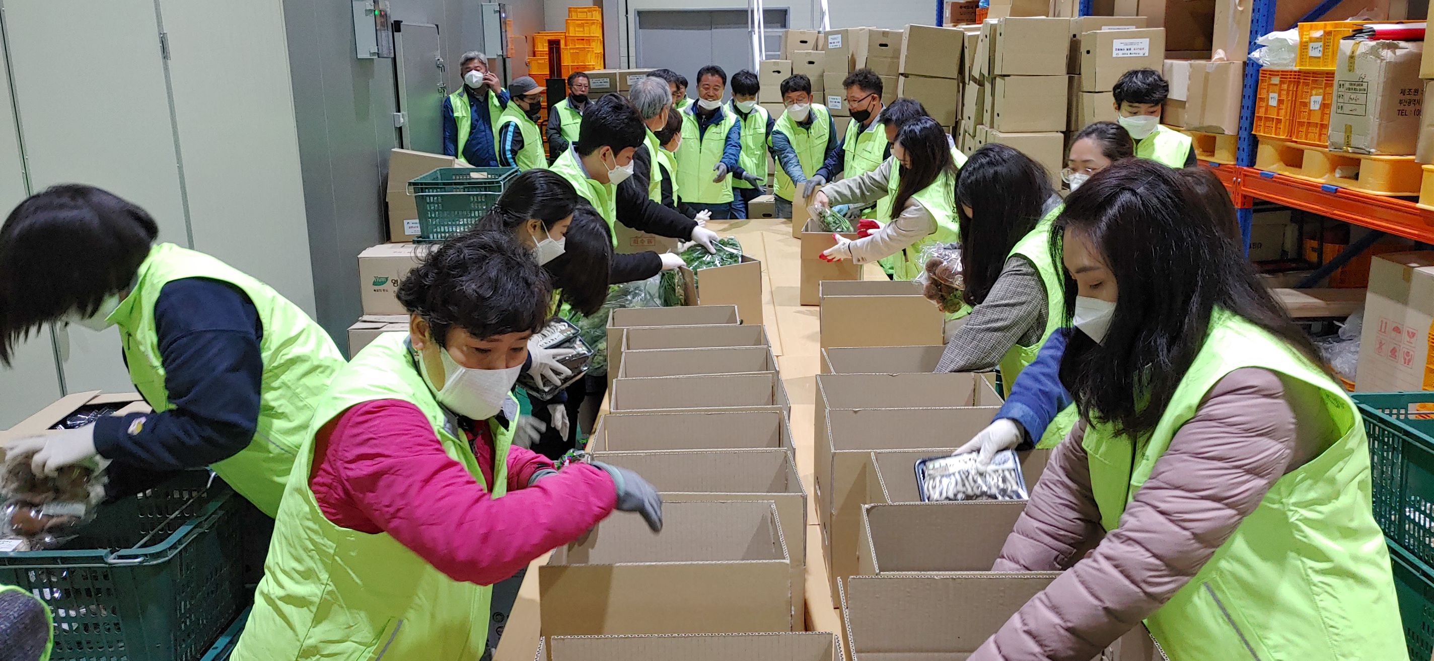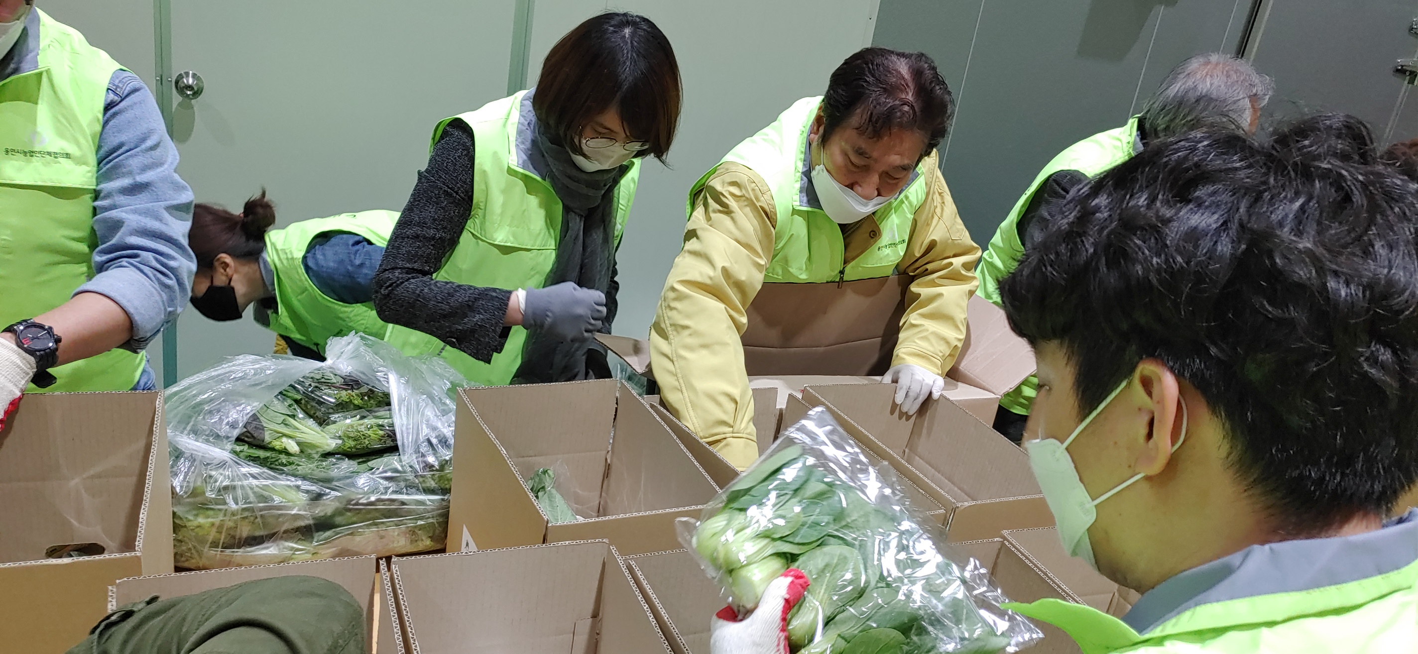 용인시 농업기술센타에서 용인농업인단체협의회 회원과 용인시농업기술센터 직원들과 협심하여 코로나19로 어려움을 격는 농민들을 돕기위해서 우리농산물 꾸러미 포장 작업을 용인시장(백군기)도 함께 하였다.