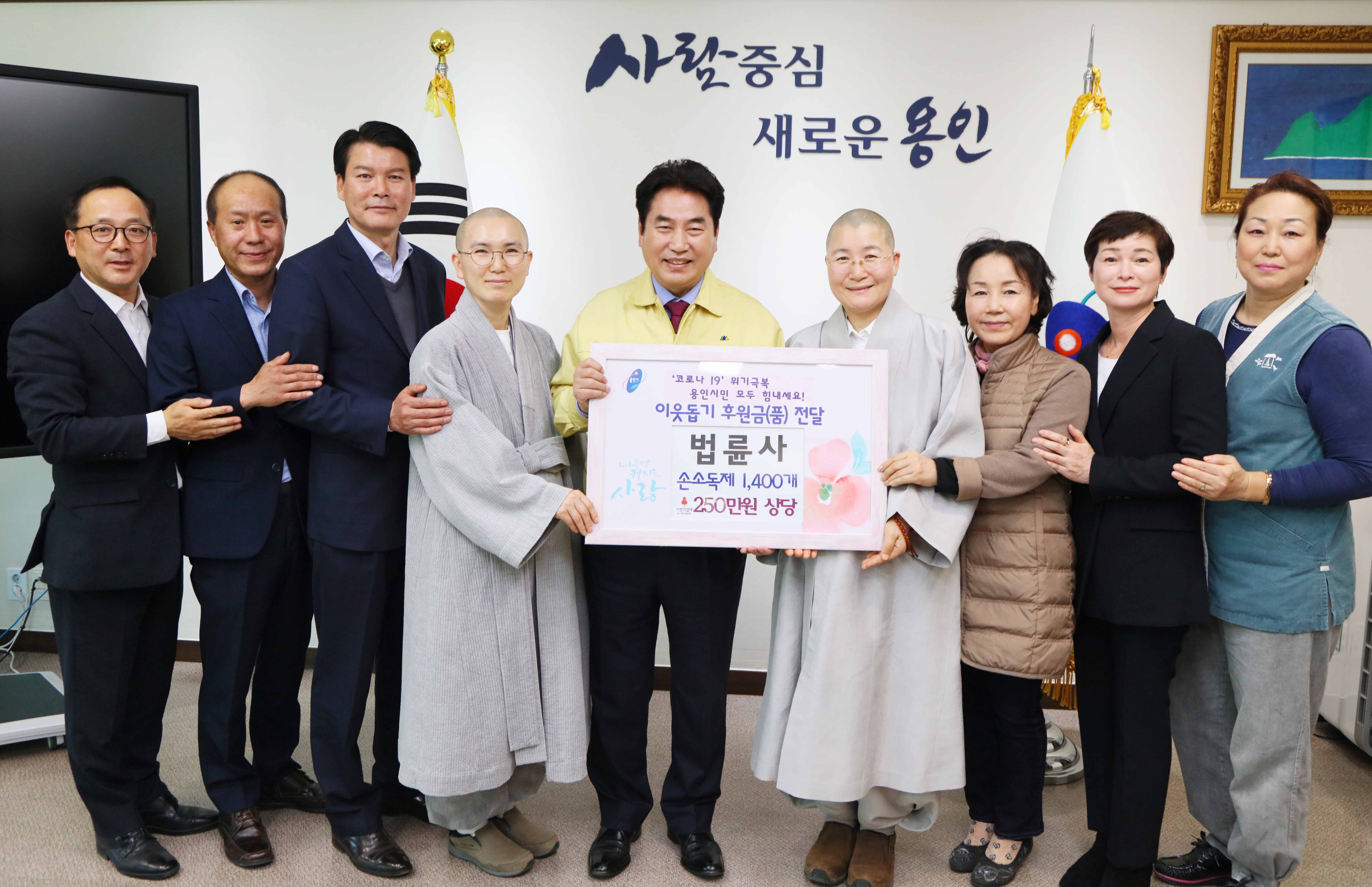 용인시, 법륜사 ‧ 관외 업체 코로나19 극복 성금‧품 기탁 김경순 기자 2020-04-29 00:52 가 본문내용 확대/축소 본문 용인시, 법륜사 ‧ 관외 업체 코로나19 극복 성금‧품 기탁용인시, 법륜사 ‧ 관외 업체 코로나19 극복 성금‧품 기탁 용인시는 28일 코로나19로 어려움을 겪는 이웃에 전해달라며 대한불교조계종 법륜사와 과천시 기업인 ㈜엔백이 성금‧품을 기탁했다고 밝혔다. 이날 법륜사 주지 현암 스님 등 10명이 백군기 시장실을 방문해 250만원 상당의 손소독제(100㎖) 1400개를 전달했다. 현암 스님은 “코로나19 위기로 힘든 시간을 보내고 있는 이웃에게 조금이나마 보탬이 되길 바라며 앞으로도 이웃과 상생에 힘쓸 것”이라고 말했다. 백 시장은 “부처님 오신 날을 앞두고 법륜사에서 이웃을 위해 성품을 기탁해줘 감사하며 더불어 사는 배려의 복지도시를 만들도록 세심한 관심을 가질 것”이라고 말했다. 이날 과천시 소재 환경설비공사업체 엔백 관계자들이 저소득 가정 이웃에게 전해달라며 300만원을 기탁했다. 관내 생활쓰레기 집하시설 관리를 위탁 수행하는 이 회사는 지역에 나눔을 실천하고 싶어 성금을 기탁했다고 밝혔다. 시는 기탁받은 성금‧품을 경기사회복지공동모금회를 통해 사회복지시설이나 저소득 가정의 이웃을 돕는 데 사용할 방침이다. 좋아요 0 싫어요 0 김경순 기자 기자의 다른기사 보기 목록 댓글목록 이전글 용인시, 미국서 입국 시민 1명 코로나19 확진 20.04.29 다음글 영유아 ‧ 임산부 영양관리 위해 버섯 재배 세트 지급 20.04.29