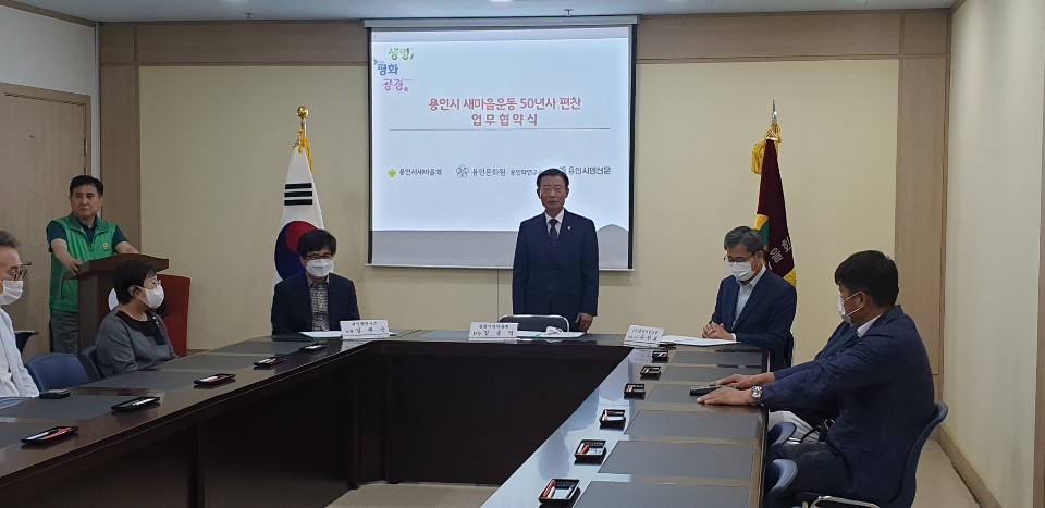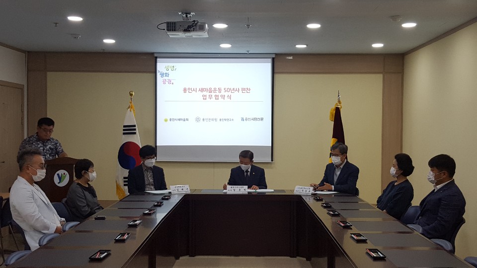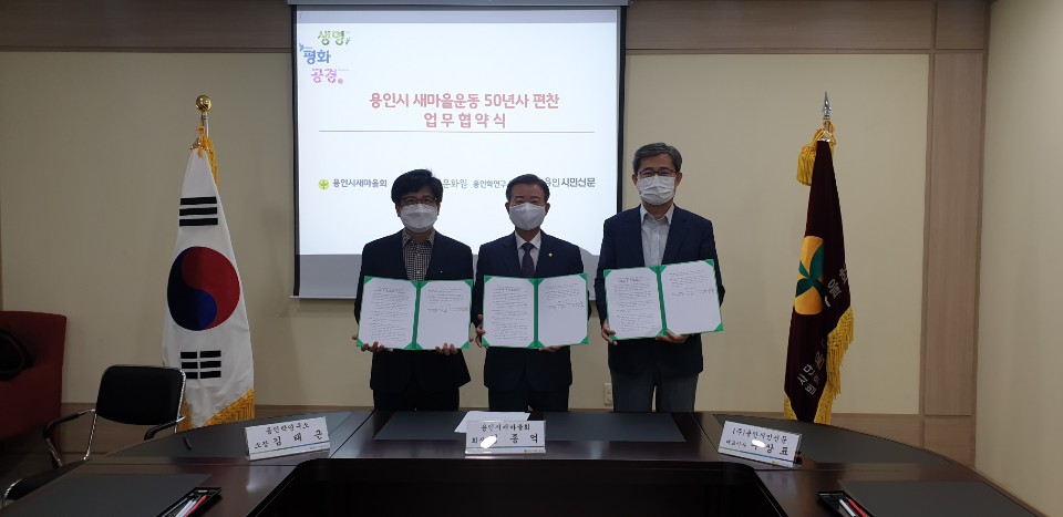 용인시새마을회 50년사 기록 문화 사업 업무 협약식 용인문화원 용인학연구소⦁용인시민신문 김경순 기자 2020-07-15 22:39 가 본문내용 확대/축소 본문 용인시새마을회 50년사 기록 문화 사업 업무 협약식용인시새마을회 50년사 기록 문화 사업 업무 협약식용인시새마을회 50년사 기록 문화 사업 업무 협약식 용인시새마을회(회장 김종억)는 새마을운동 50주년을 맞이하여 용인시 발전과 함께 성장해온 새마을운동을 기록으로 남기는 ”용인시새마을운동 50년사(史)“ 발간사업을 계획하고 향후 추진 일환으로 용인 향토사학 연구소 및 지역언론사 용인시민신문의 편찬사업에 따른 업무 협약식을 가졌다. 이날 협약식에는 코로나19 예방차원에서 용인시새마을 회장(김종억)을 비롯한 협의회(송태일 회장), 부녀회(김정식회장). 문고회(박순형 회장), 직공장회(신동선 회장) 4개 단체장들만이 참석한 가운데 약식으로 진행 되었다 협약식 앞서 김종억 용인시새마을회장은 용인시 새마을운동에 대한 편찬 사업에 함께 해주신 용인향토사학 연구소(소장 김태근)와 ㈜용인시민신문 (대표이사 우상표)에 감사한 뜻을 전했다. 이번 협약식에서는 과거 70년대 모두가 어렵고 힘든 시기에 근면, 자조, 협동의 기치로 조국근대화 발전에 초석이 된 새마을운동의 50년 역사가 용인시 발전에 어떻게 기여 해 왔는지에 대한 사실적 기록에 방점을 두고 미래 나아갈 방향을 제시하고자 하는데 그 의미가 있다 김종억 용인시새마을회장은 이번 편찬사업을 통해 과거 새마을 운동이 잘살기 위한 운동이었다면 미래 50년은 생명살림, 평화나눔, 공경문화 운동 사업을 함께 추진하고 젊은세대에 새마을운동의 정신을 새롭게 알리는 계기가 될 것이라고 말했다 현재 새마을 운동은 UNESCO 세계기록문화 유산으로 등재 되어 있는 소중한 범 국민운동으로서 용인시새마을운동50년 편찬사업은 다가오는 50년의 새마을운동에 디딤돌이 될 것이다. 좋아요 0 싫어요 0 김경순 기자 기자의 다른기사 보기 목록 댓글목록 이전글 원삼면, 기업인협의회 등 세탁기·건조기 후원 20.07.15 다음글 이라크서 귀국 시민 2명 코로나19 양성 판정 20.07.15