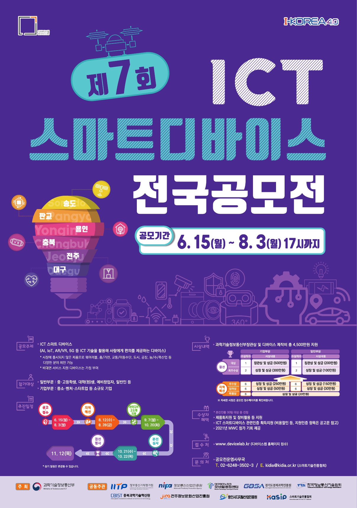 용인시디지털산업진흥원, 제7회 ICT 스마트 디바이스 전국 공모전 추진 비대면 서비스, 5G 시대를 선도할 혁신적인 디바이스 아이디어 공모 김경순 기자 2020-07-15 22:46 가 본문내용 확대/축소 본문 용인시디지털산업진흥원, 제7회 ICT 스마트 디바이스 전국 공모전 추진 용인시디지털산업진흥원(원장 김병현)은 미래 기술을 선도하기 위한 스마트 디바이스 스마트 디바이스 : 기존 PC, 스마트폰 등의 단말기(디바이스)를 넘어 사물인터넷, 인공지능, AR·VR 등 정보통신기술을 활용한 지능화된 기기 분야의 제품화를 지원하는「제7회 ICT 스마트 디바이스 전국 공모전」을 개최하여 다양한 아이디어를 발굴할 계획이라고 밝혔다. 과학기술정보통신부가 주최하고 용인시디지털산업진흥원 등 전국 6개 ICT 디바이스랩 수행기관과 정보통신산업진흥원이 공동으로 주관하는 이번 공모전은‘14년부터 올해까지 매년 스마트 디바이스 분야의 우수한 아이디어를 발굴하고 제품개발과 기업성장을 지원해왔으며, 연간 300여건이 넘는 아이디어를 발굴해온 국내 대표 디바이스 분야 공모전이다. 이번 공모주제는 ‘ICT 스마트 디바이스’로, 시장에 출시되지 않은 제품에 한해 웨어러블, 홈·가전, 이동수단, 도시, 공장, 공공분야 등의 제안이 가능하다. 특히, 올해는 코로나19 적극 대응을 위한 비대면서비스(언택트) 디바이스에 대하여 가산점을 부여한다. 접수마감은 오는 8월 3일까지로 ICT 디바이스랩 홈페이지를 통해 신청할 수 있으며, 지역별 예선전 및 본선심사를 거쳐 총 6개팀이 결선에 참가하게 된다. 지역예선 후 공모전 본선 진출팀은 약 1개월간 제품화 지원과 함께 ‘ICT융합 품질인증’ 획득 지원, 5G 통신모듈 탑재 디바이스 단말 검증, 다양한 시험인증 지원 등의 혜택을 선택적으로 제공할 예정이다. 11월에 개최되는 결선에서는 대상(과기정통부장관상) 2개팀, 최우수상(정보통신기획평가원장상) 4개팀에게 수여한다. 본 공모전은 시상에만 그치지 않고 제안한 아이디어가 사업화로 연계될 수 있도록 MWC(모바일 월드 콘그레스) 등 국내·외 ICT 전시회 참가 기회를 제공하여 실질적인 비즈니스 네트워킹과 글로벌 진출을 지원할 계획이다. 진흥원 김병현 원장은 “이번 공모전을 통해 포스트 코로나 시대를 선도할 수 있는 혁신적인 아이디어를 가지고 있는 예비창업자나 우수 스타트업을 발굴ㆍ지원하여, 비대면 연계 서비스 산업 확대 및 신시장 개척을 선도하는 기업으로 도약할 수 있도록 아낌없는 지원을 하도록 하겠다”고 말했다. 좋아요 0 싫어요 0 김경순 기자 기자의 다른기사 보기 목록 댓글목록 이전글 성복동 롯데캐슬 주민들 백군기 시장에 감사패 20.07.15 다음글 기흥구, 제17대 이정표 구청장 현장 점검으로 시작 20.07.15