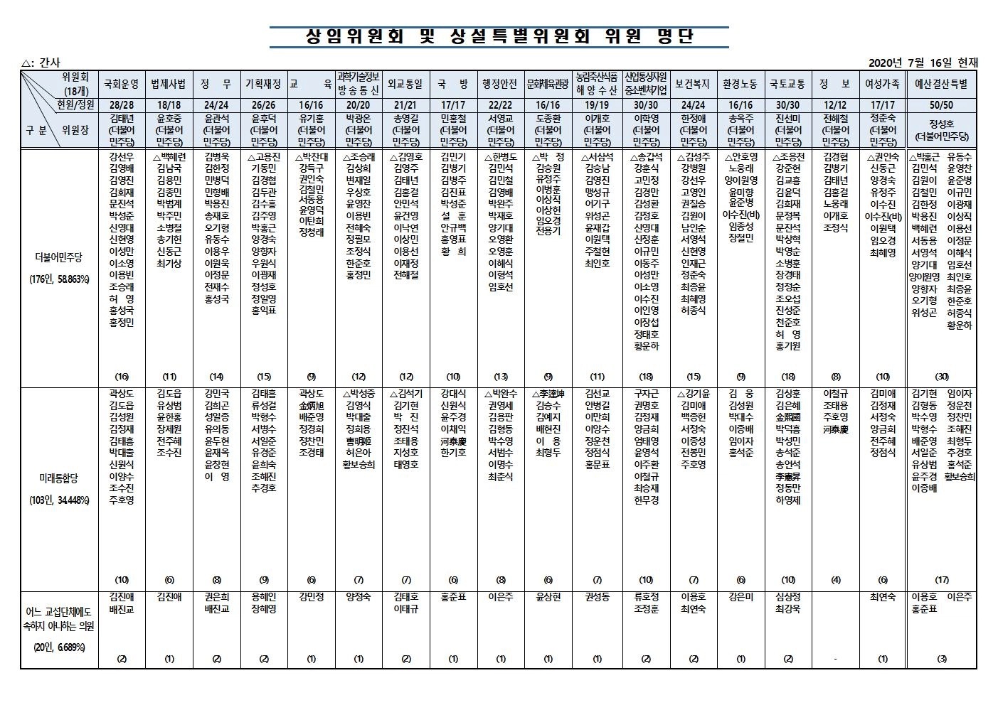 제21대 국회상임위원회 및 특별위원회 명단입니다.