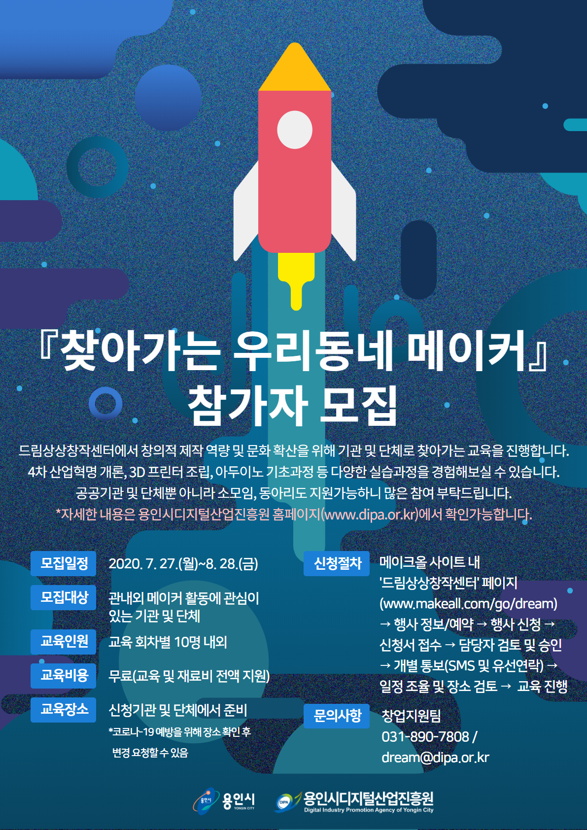 용인시디지털산업진흥원, 찾아가는 우리동네 메이커 교육 참가자 모집 3D프린터, 아두이노 등 장비실습 방문교육 무상 제공 - 김경순 기자 2020-07-28 00:15 가 본문내용 확대/축소 본문 용인시디지털산업진흥원, 찾아가는 우리동네 메이커 교육 참가자 모집 용인시디지털산업진흥원(원장 김병현, 이하 진흥원)은 오는 7월 27일부터 ‘찾아가는 우리동네 메이커’ 교육 참가자를 모집한다. ‘찾아가는 우리동네 메이커’는 메이커 교육을 희망하는 기관 및 단체에 직접 방문하여 장비실습교육을 제공하는 프로그램이다. 4차 산업혁명 시대의 핵심 제품인 3D프린터, 아두이노 등 창의 활동교육을 통해 4차 산업혁명을 이해하고 관련 분야 역량을 강화하는 것을 목적으로 한다. 이번 프로그램은 전액 무료로 지원되며, ▲4차 산업혁명과 메이커 운동 ▲3D 프린터 제작 및 실습 ▲아두이노 기초과정 ▲장비활용 소품 제작 등의 커리큘럼으로 운영된다. ‘찾아가는 우리동네 메이커’ 교육대상은 중·고·대학생 및 일반인으로 코로나-19 감염 예방을 위해 참석인원은 회당 10명 이내로 제한한다. 교육을 희망하는 기관 및 단체는 교육 참석인원의 2배 이상을 수용할 수 있는 교육장소를 준비하여야 하며, 반드시 창문 및 환기시설이 구비되어 있어야 한다. 진흥원 관계자는 “융합기술이 대두되고 있는 4차 산업혁명 시대에 제조 문화의 확산을 위해 다양한 교육 프로그램을 적극적으로 지원할 것이며, 찾아가는 교육이 시민의 창의적 혁신역량을 강화할 수 있는 체험의 장이 될 수 있기를 바란다”라고 밝혔다. 신청방법 등 자세한 사항은 용인시디지털산업진흥원 홈페이지(www.dipa.or.kr) 공지사항을 통해 확인할 수 있다. 좋아요 0 싫어요 0 김경순 기자 기자의 다른기사 보기 목록 댓글목록 이전글 흥덕지구 요양시설 막게 지구단위계획 변경 20.07.28 다음글 동천동 898일대 냉동창고 건립 계획 반려 20.07.28